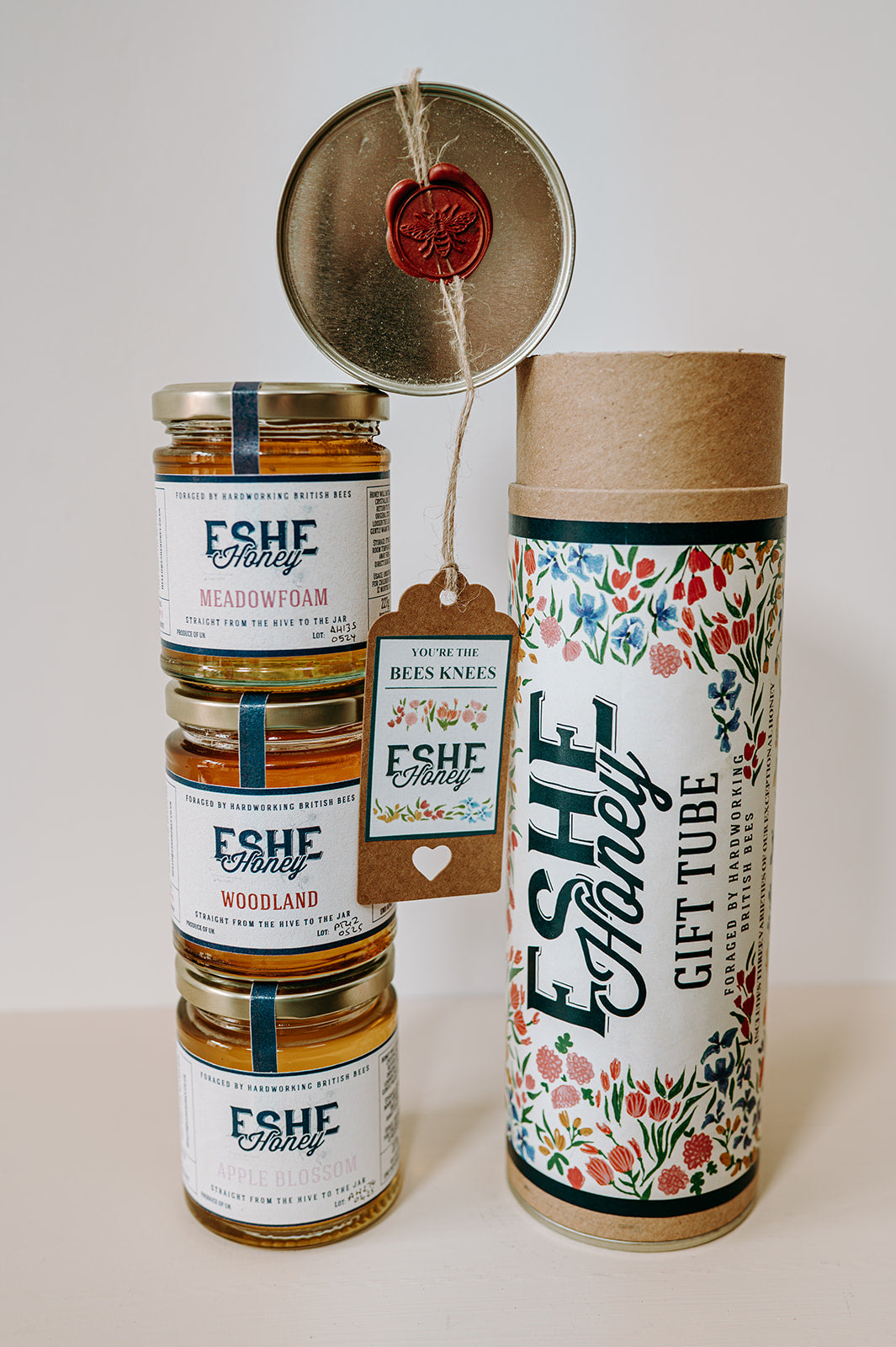 Our unique Eshe Honey Gift Tube is the perfect way to share the taste of nature with someone special. Each tube contains three 227g jars of honey, hand-wrapped in tissue paper and carefully packaged alongside our Eshe Honey information card in a sustainably sourced cardboard tube.