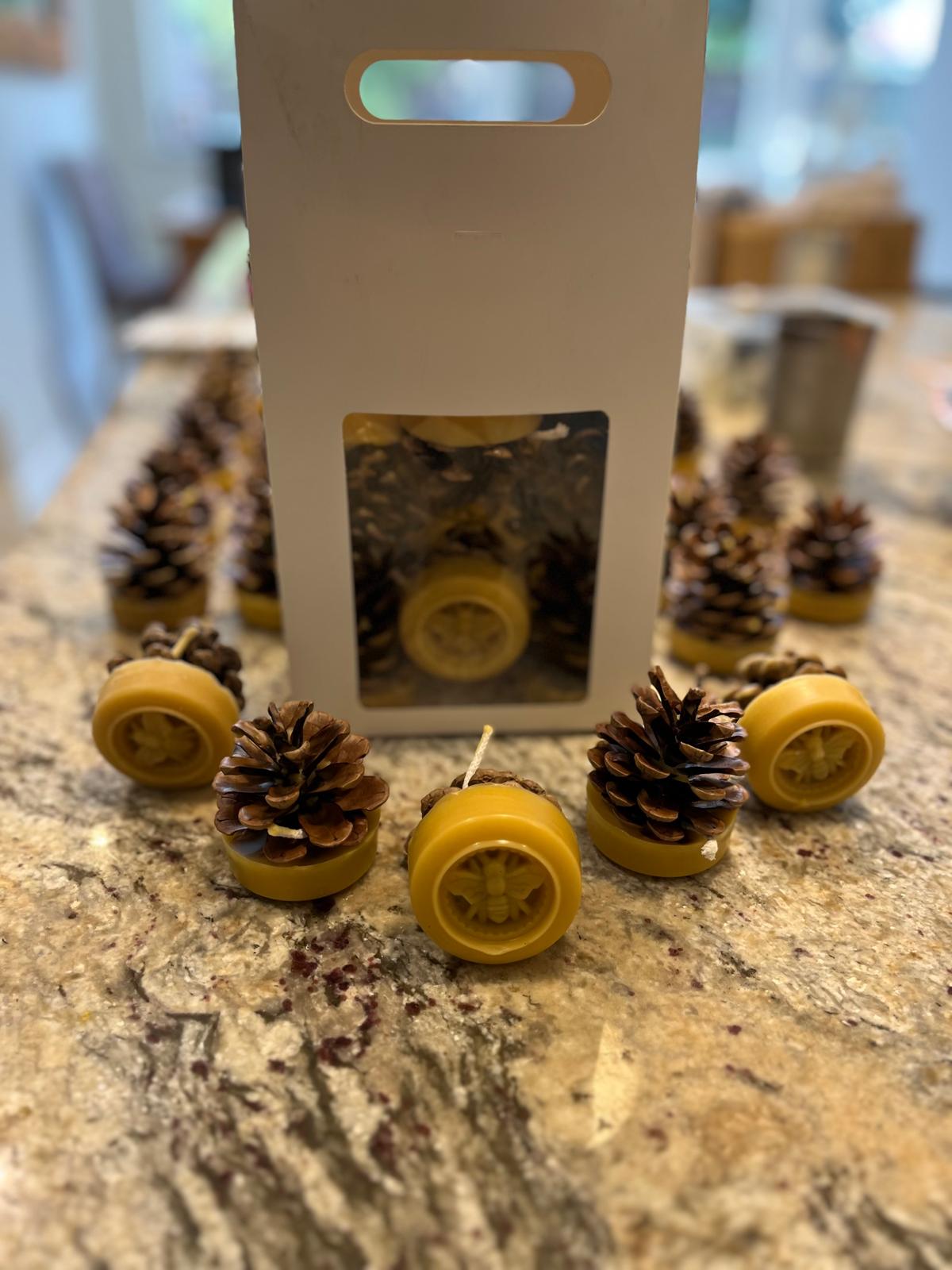 Each bag contains 10 Kindle Cones made with British beeswax and handpicked British pine cones.